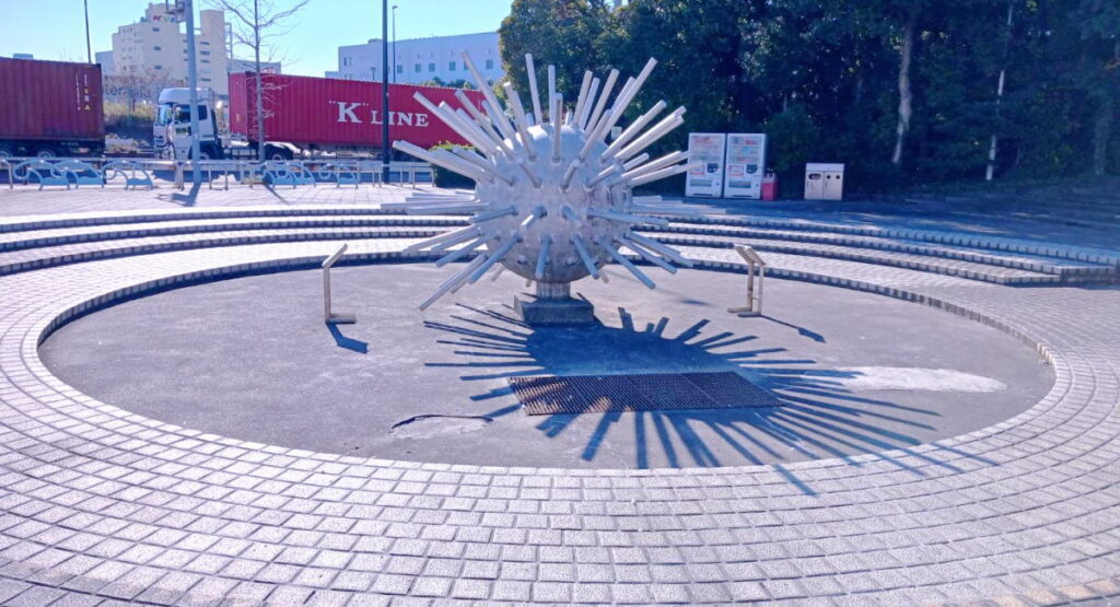 みなとが丘ふ頭公園は、東京都品川区八潮(おおいふとうエリア)にある港湾沿いの都市公園です。緑の丘や芝生広場から東京湾やコンテナヤードの景色・お台場方向の眺望 が楽しめるスポットです。手軽にBBQを楽しめる芝生エリアもあります。公園利用は基本無料です。こちらは公園に入って直ぐにある噴水です。