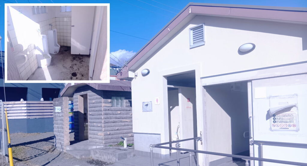 海岸の入口付近にある公衆トイレです。男性トイレの中を覗いてみましたが、ちょっと汚れてるのかな~という印象でした。ただ、気にならない方なら問題ない程度だと思います。