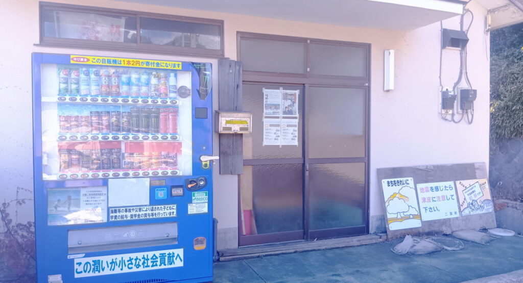 周辺を探索すると、漁業関係者の建物のようなところがありました。自動販売機もありますね。