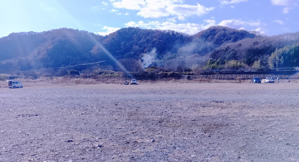 愛川町中津川沿いにある八菅橋下中津川河川敷です。BBQやキャンプまで時間制限もなく、心置きなく楽しむことが出来る無料のスポットです。写真の通り、敷地は凄く広く開放的です。車も2000台ぐらいは停められそうですね。12月の平日でも、ぽつぽつとキャンプをされている方がいらっしゃいました。空気や景色も最高です。