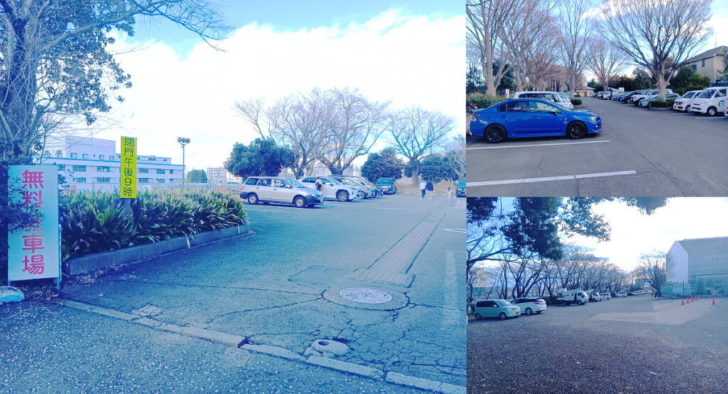大和市の引地台公園駐車場に到着です。無料と有料の駐車所が複数あります。全部で300台~400台ほどは停められそうです。北側の無料駐車場(約71台)が満車の場合は、南側の無料駐車場(約60台)に回ると停められるかもしれません。有料ですが温水プール立体駐車場は、約180台停めることができます。