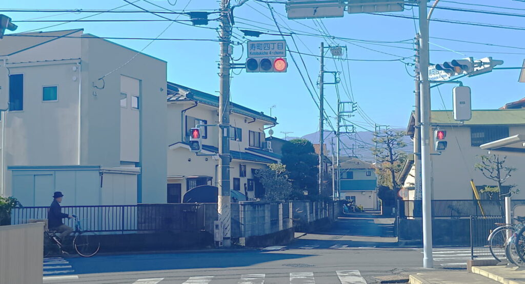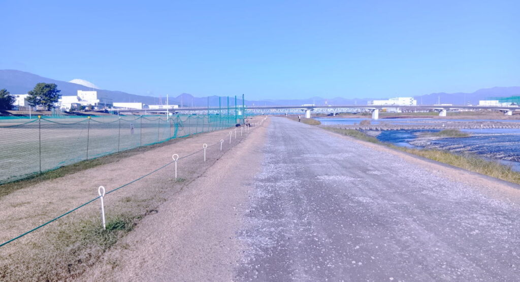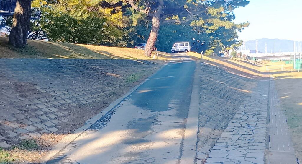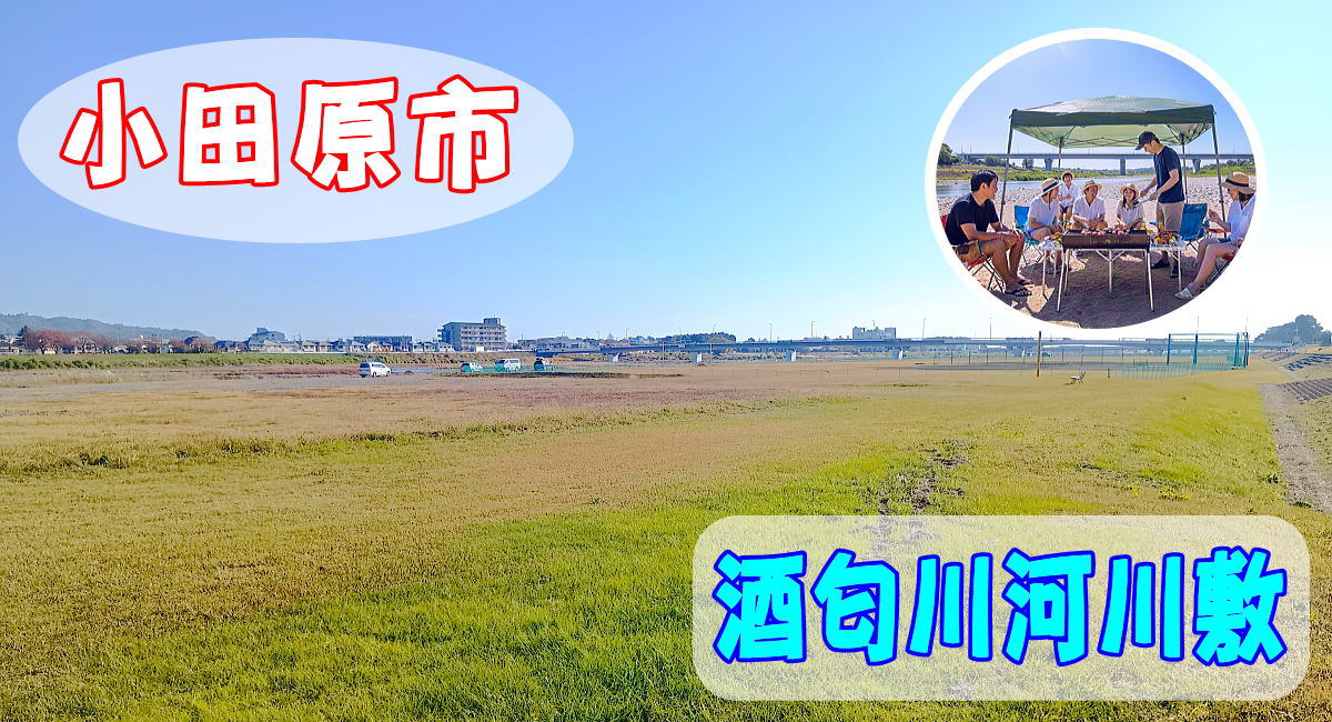 国道1号線横浜方面から向かわれる場合、セブンイレブンとENEOSがある交差点を右折し、2つ目の信号にあたる、寿町四丁目の信号を右折し、直進すると酒匂川河川敷広場への入口に到着できます。車で河川敷まで行かれる道はここしかありません。少し道路も狭いので、本当にあってるかなど不安にもなります。