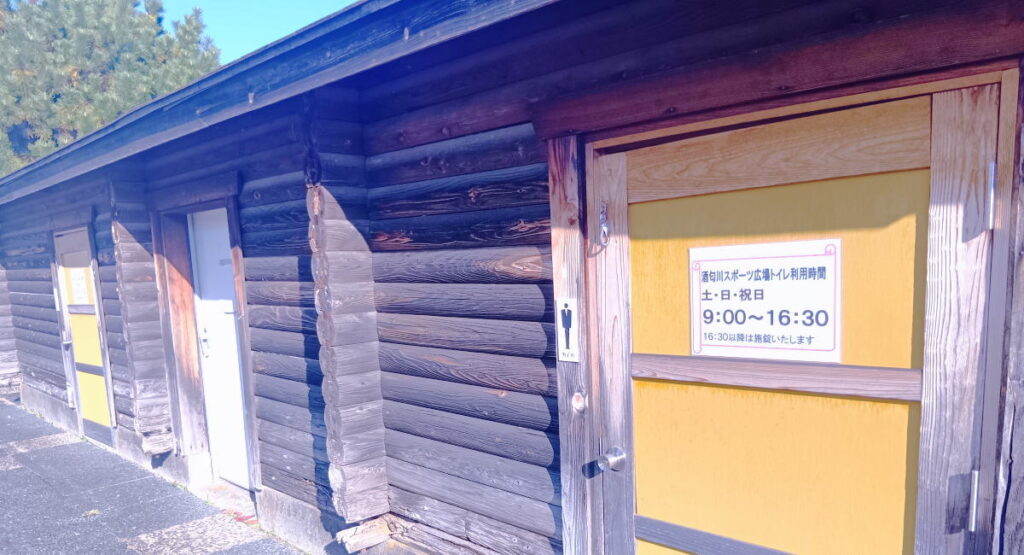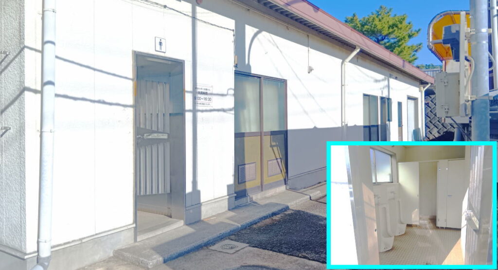 左を向くと、公衆男女トイレの建物がありました。扉が開いており中が覗けましたが、綺麗に整備されています。