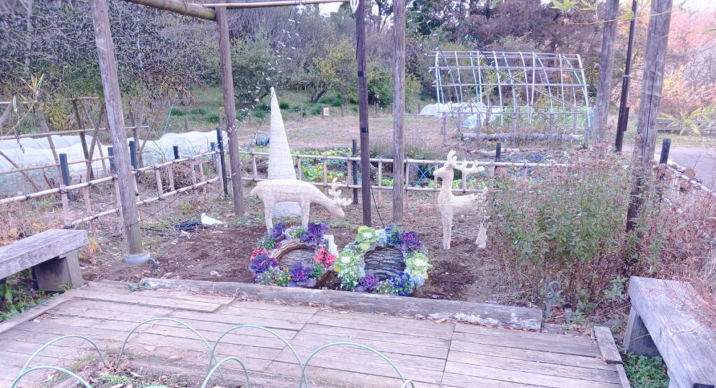 トナカイのイルミネーションですね。夜になると綺麗そうです。ちょっと一休みできそうなベンチもあちらこちらあるので、お弁当などを持って来ても良さそうです。