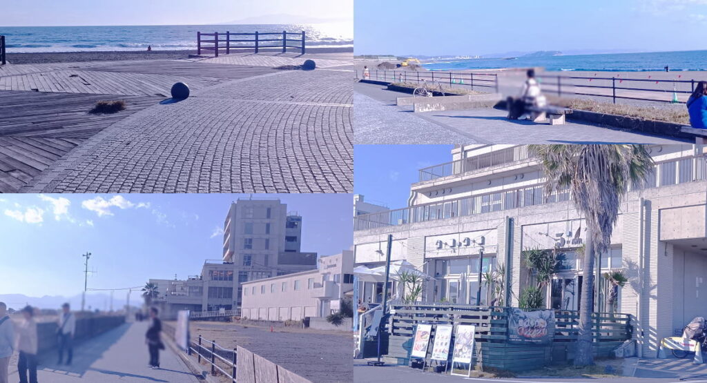 海岸周辺はこんな感じです。ジョギングされている方や犬の散歩をされている方も多くいらっしゃいました。天気が良いと江の島が見え、富士山も見えます。ちょっとしたバカンスに来た気分になり景色も最高です。カフェやレストランで、海を一望しながら食事なんかも良いと思います。