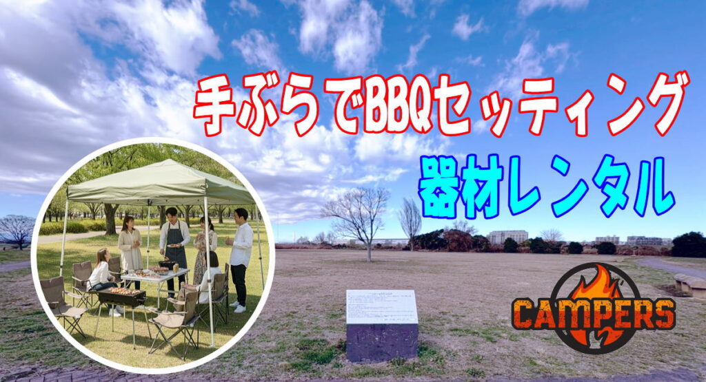 約60万㎡の広々とした荒川戸田橋緑地なら、きっと開放的なBBQを楽しむことができることでしょう!都心部からのアクセスも良いので、電車でも気軽に来られる場所です。こちらのスポットへもBBQ器材のセッティング、配達、レンタル承っております。