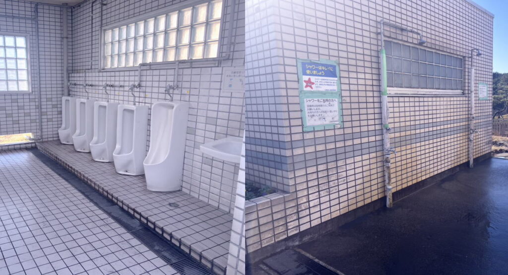 トイレ内はとても綺麗に管理されています。汚れていて使えないという心配はなさそうですね。また、トイレの横にはシャワーと足洗い場が設置されているので、足に砂が付いてる時は利用できますね。