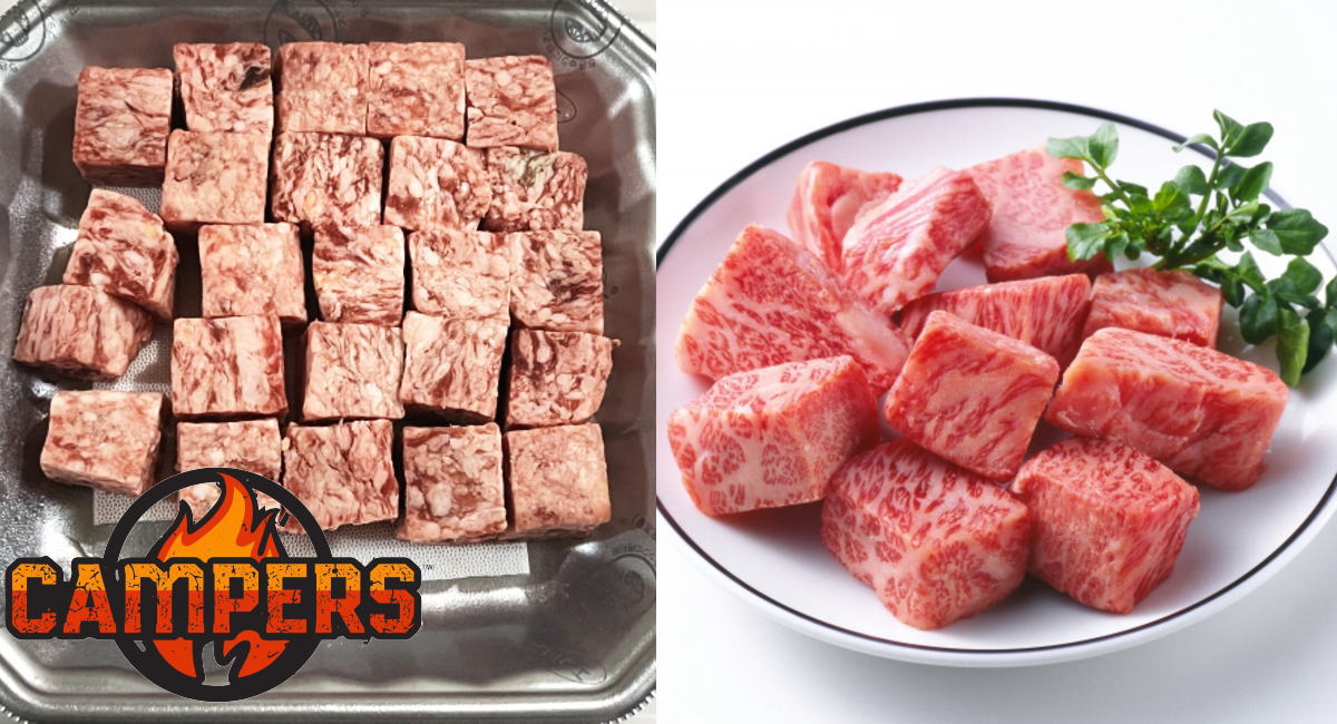 サイコロステーキは強火で表面を一気に焼き固め、火から外して少し休ませてから塩・胡椒で仕上げるとBBQでも肉汁たっぷりになります。