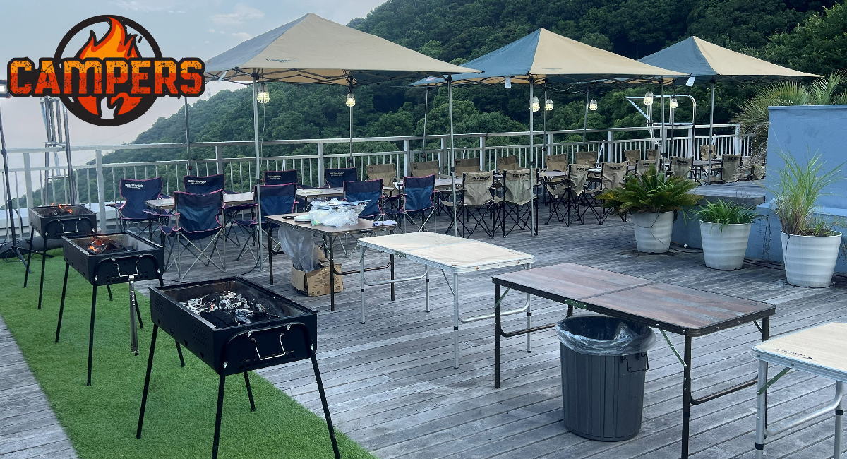 • 機材レンタル(テーブル4基・チェア人数分・BBQグリル3基・食材用トング3個・炭用トング3個・軍手3個)